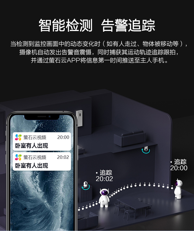 百色地区萤石家用无线云台摄像头高清夜视手机远程监控宠物儿童H6C